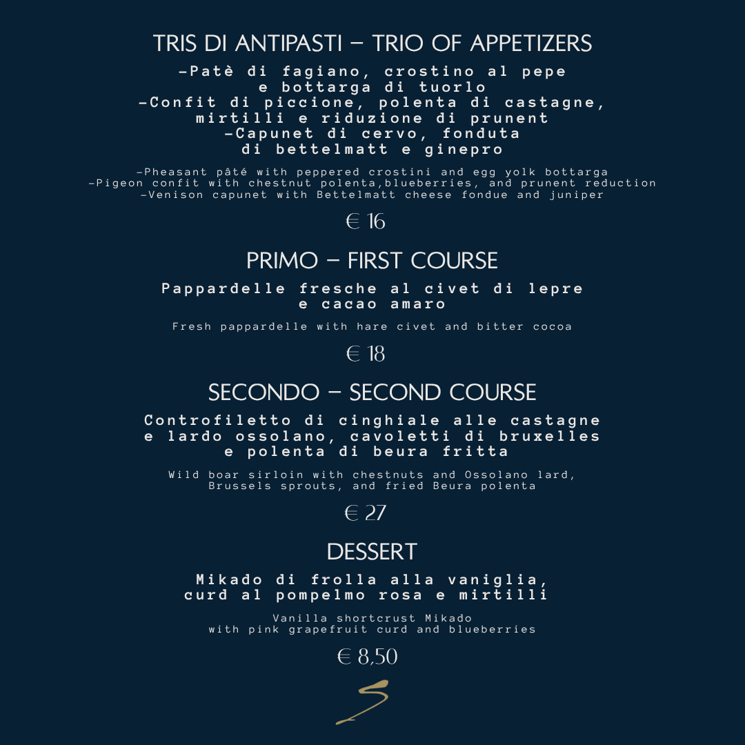 Ti aspettiamo con menù speciale a €65. Prenota il tuo tavolo e ricevi un codice sconto per soggiornare all’Hotel Primavera